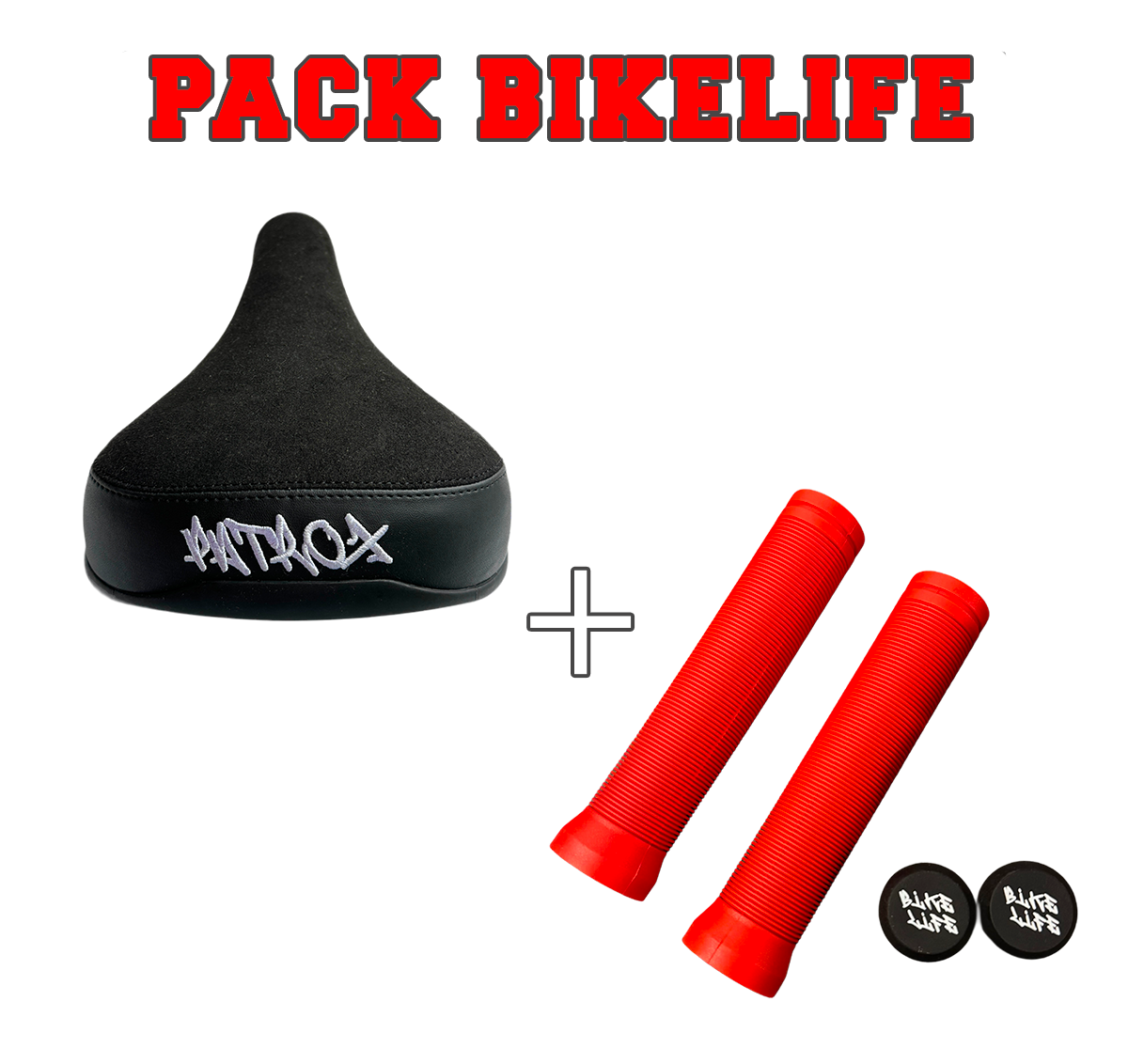 Pack Bikelife Patrox – Poignées 145 mm + Selle Patrox Rouge